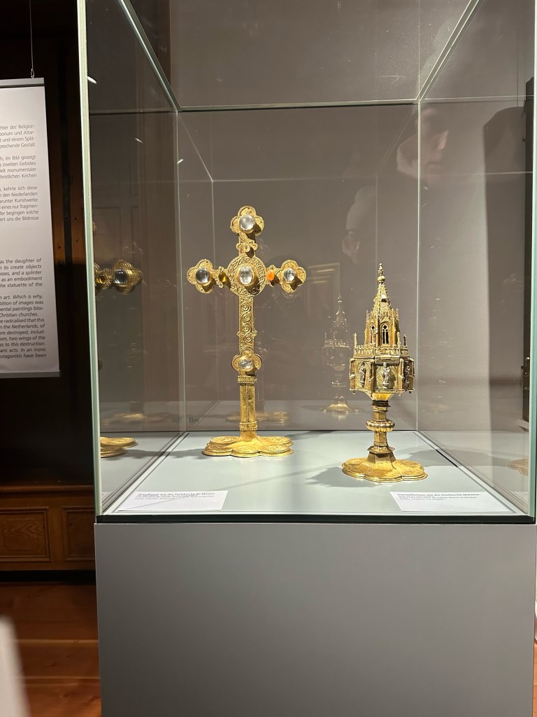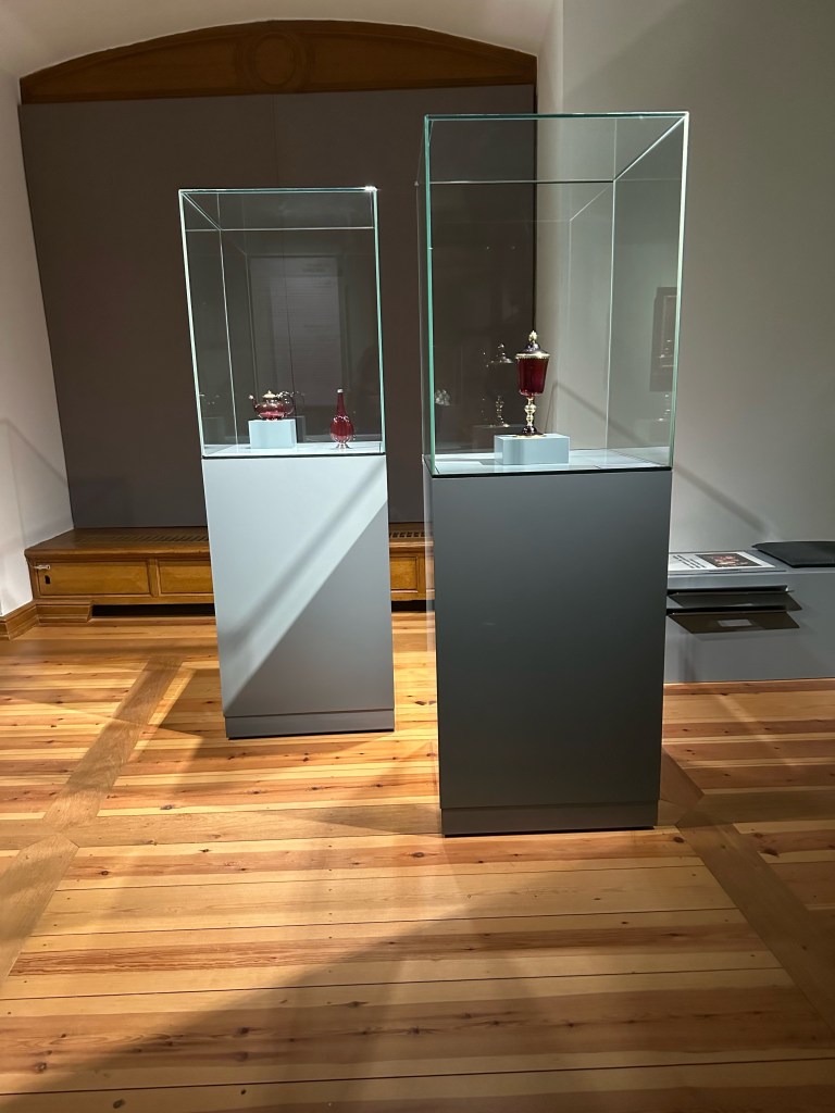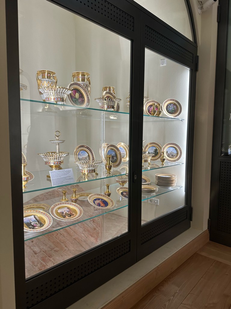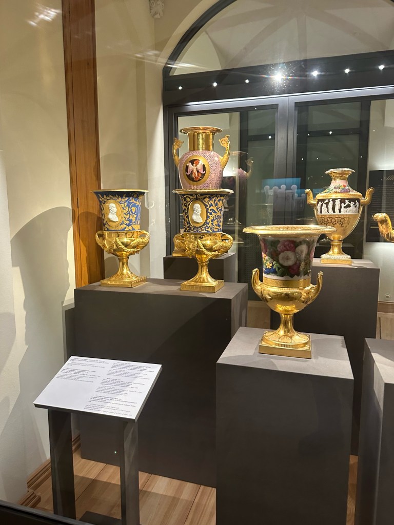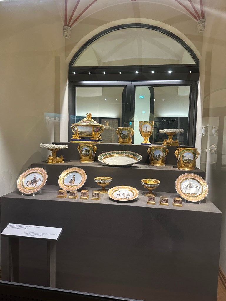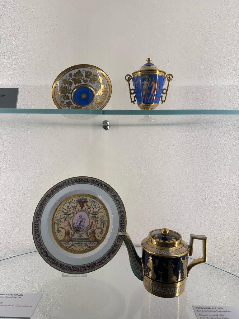 One of the things I was interested in doing was to walk around the court yard but unfortunately it was closed. After walking around all the different rooms we went back to the first floor where the gift shop resided. I decided to get a cute crown pen that says Schwerin schloss as well as a cute gold photo frame. As we were walking out to the ticket lobby I noticed that we had a few more minutes until the castle closed to the public so we decided to follow a couple in front of us that led us to another museum entrance. We let the ticket lady punch our tickets and we quickly walked through the collection of paintings, sculptures, crafts, and porcelain. The porcelain collection was definitely my favorite. The colors, designs, and artwork on them were gorgeous. I highly recommend seeing the collection before leaving the castle.