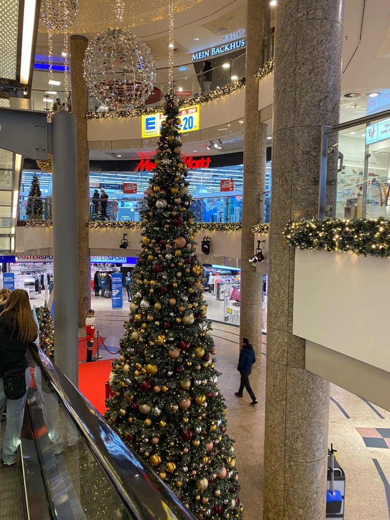 After being escorted out we walked across the other bridge to what seems like a park in the dark but is actually the castles garden. Unfortunately we did not stay there for long as it was getting too cold for me and it was too dark for us to even enjoy it. So we started heading off the grounds of the garden and castle and headed towards the Döner shop that we google searched on our phones. It was delicious but there was definitely too much cheese for a person that is lactose intolerant. After eating we decided to walk around one of the malls and do some shopping. I ended up buying a cleanser and moisturizer from Douglas, which is a beauty store similar to a Sephora in the states. 30 to 40 minutes went by and we grew tired so we headed back to the car and after 10 euros we were on our way home. The 10 euros was for the parking by the way.
