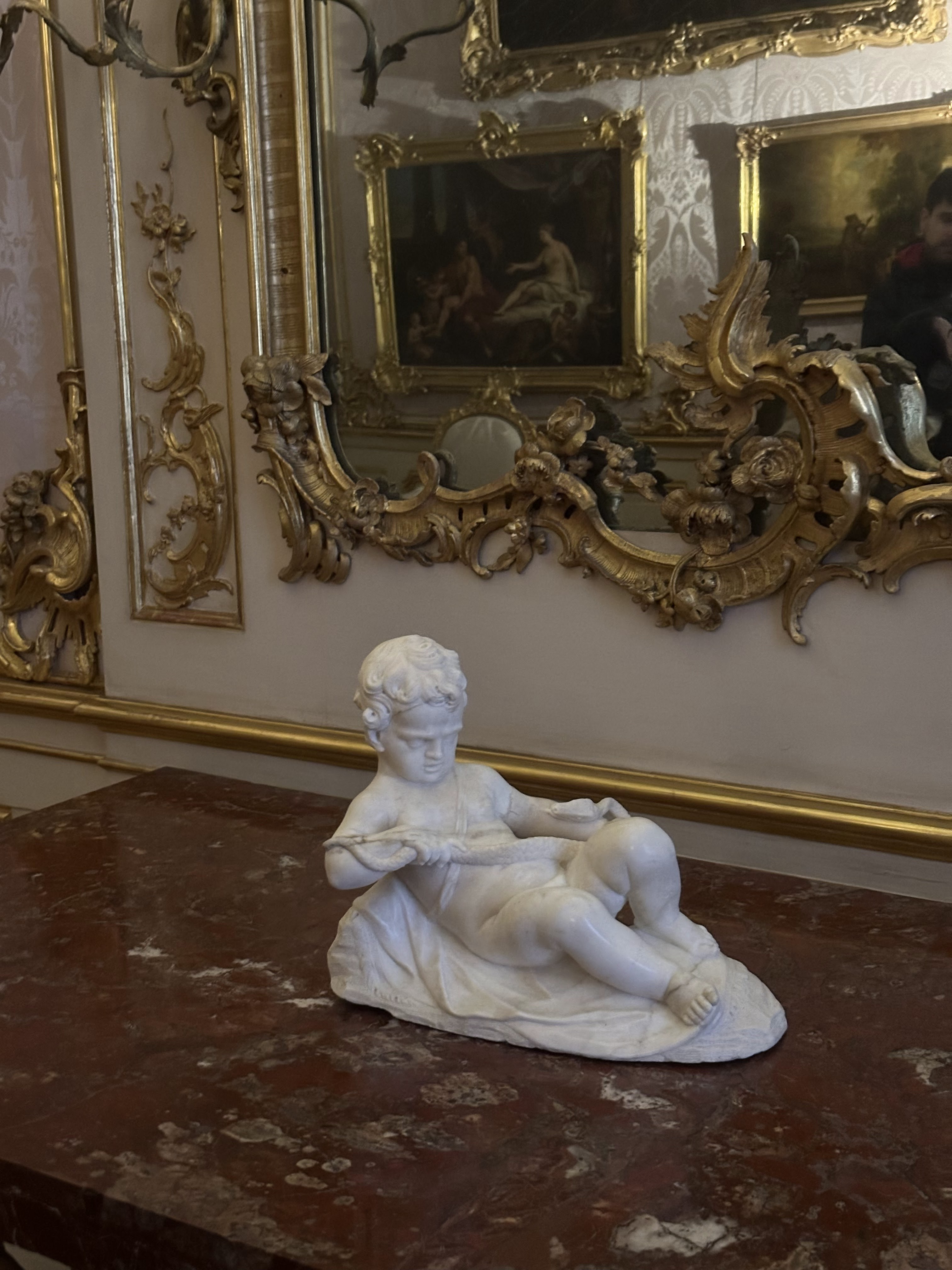 We began our tour at the Sanssouci Palace, where each visitor received an audio guide device and could choose their preferred language. Although we toured in a group, everyone was free to explore the palace at their own pace, which I really appreciated. The audio guide was very informative, but I often found myself so mesmerized by the beauty of each new room that I forgot to listen. The palace was absolutely stunning.